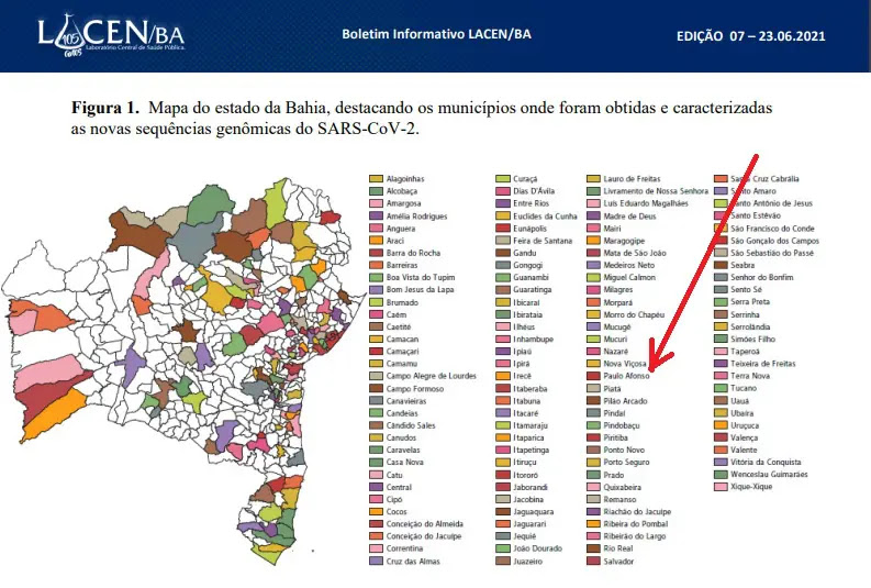 A P1 é caracterizada como uma cepa mais agressiva do ponto de vista da transmissibilidade e possibilidade de agravamento mais rápido da infecção. Entre os 121 municípios listado pelo LACEN estão: Cipó, Euclides da Cunha, Inhambupe, Alagoinhas, Paulo Afonso, Ribeira do Pombal, Tucano, Serrinha e Uauá.